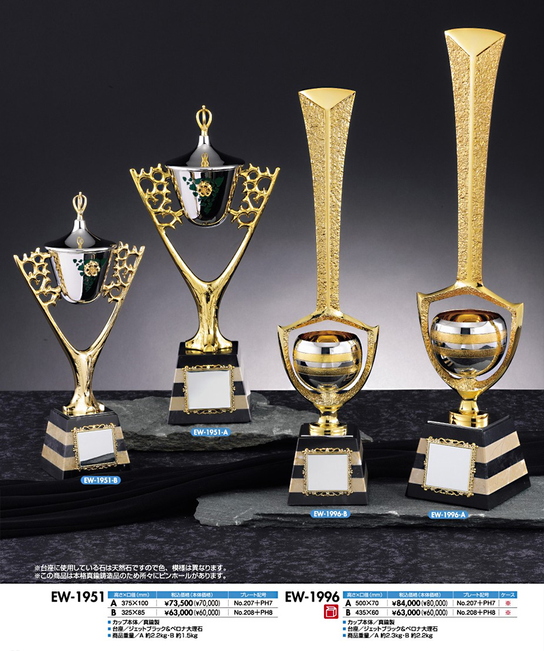 カメオ風や大理石タイプ、また幾何学的なものなど、美しく個性的なデザインのアートカップは、見る人を飽きさせない魅力を放ちます。ちょっぴり差をつけたい大会に、おすすめの逸品です。